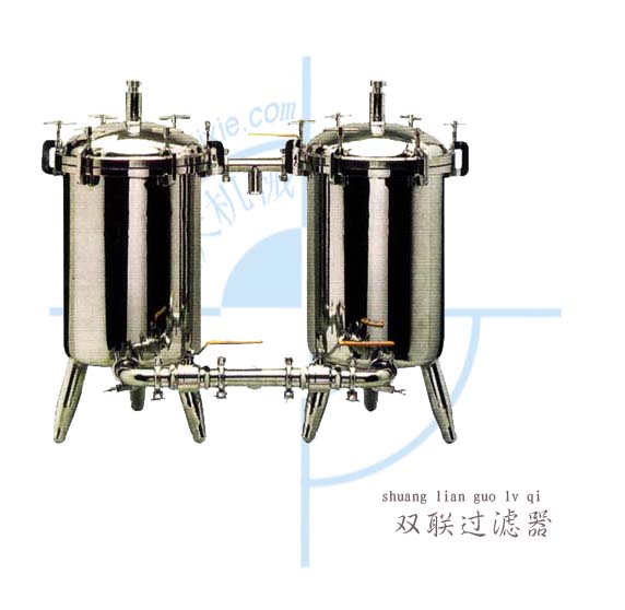 雙聯(lián)過濾器全部采用SUS304優(yōu)質(zhì)不銹鋼制造,是由兩只圓柱體組成,內(nèi)外拋光0.4um,頂部裝有壓力表,排氣閥,雙聯(lián)過濾器適用于去除鮮奶、糖液、飲料、口服液等液體中肉眼看不見的固體雜質(zhì)的凈化。 雙聯(lián)過濾器技術(shù)參數(shù) 規(guī)格 0.15㎡ 0.25㎡ 0.35㎡ 流量 3 T/H 5 T/H 10 T/H 外形 1050×420×1087 1300×500×1100 1520×550×1200